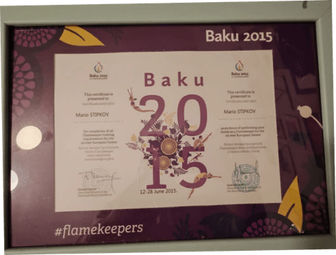 Baku 2015 European Games Volunteering Certificate.