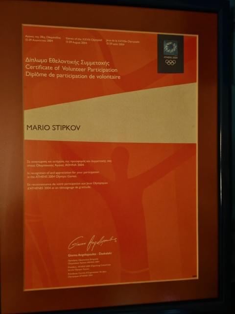 Athens 2004 Summer Olympics Volunteering Certificate